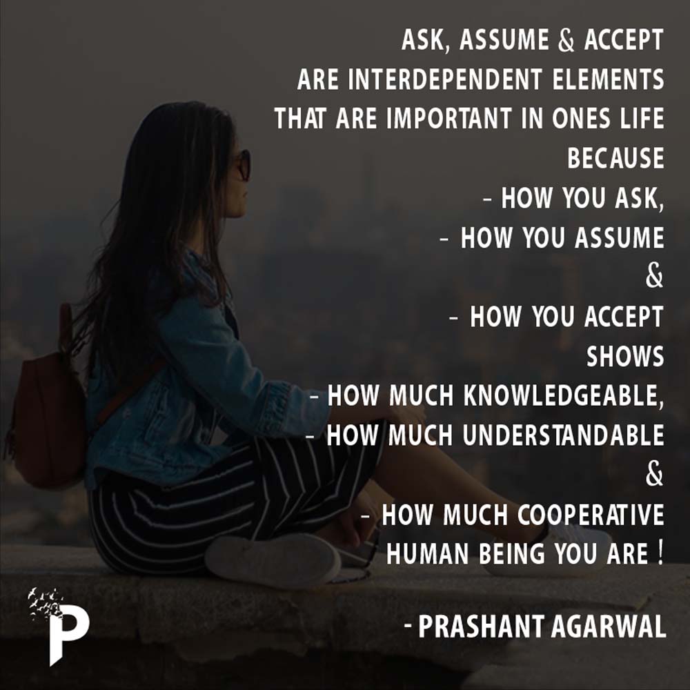 What we ask, How we assume and then How easily we accept is important, as it represent us how wise we are as a human being.