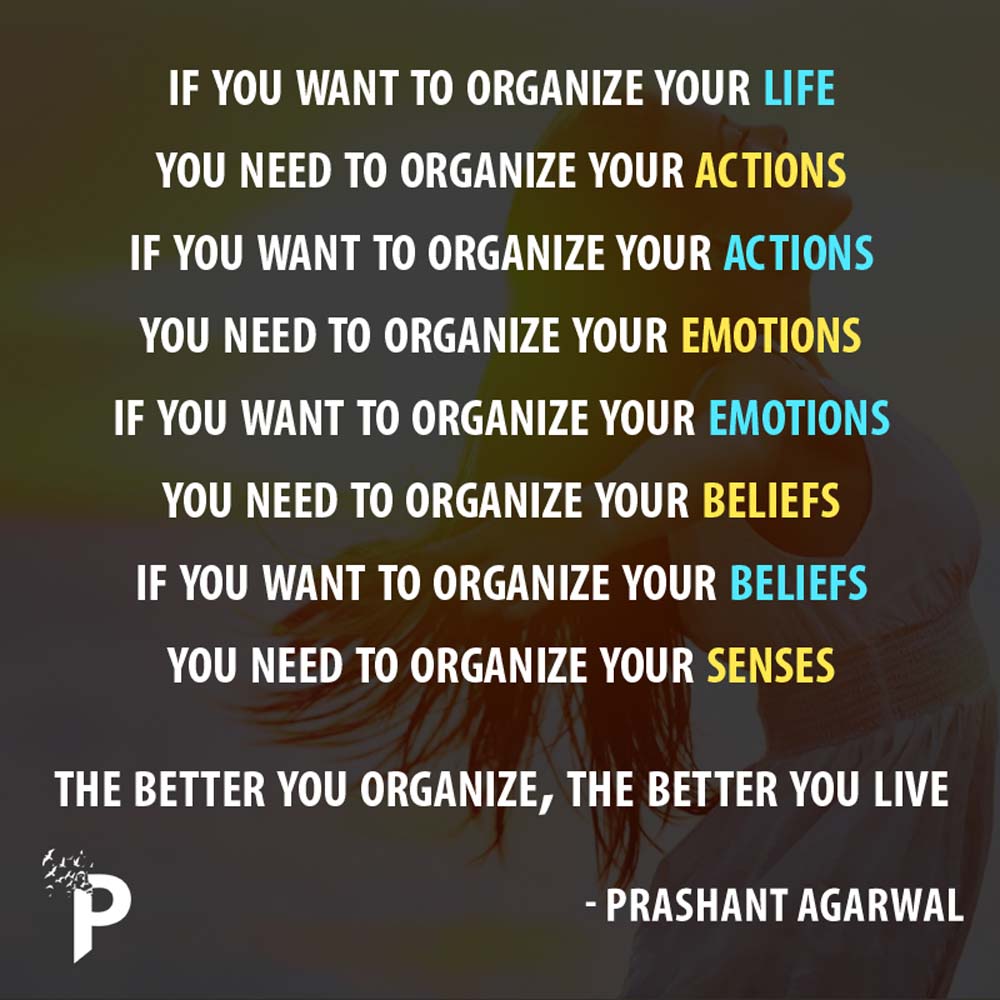 Life is a labyrinth of senses, beliefs, emotions and actions; all tangled together. Life always seems complex to those who get intimidated by its entanglements. Once we start organizing our life, all our woes take a back seat. It all starts at a very elementary level. We need to pull the strings of our wavy senses so that the foundation of a firm belief can be formed.