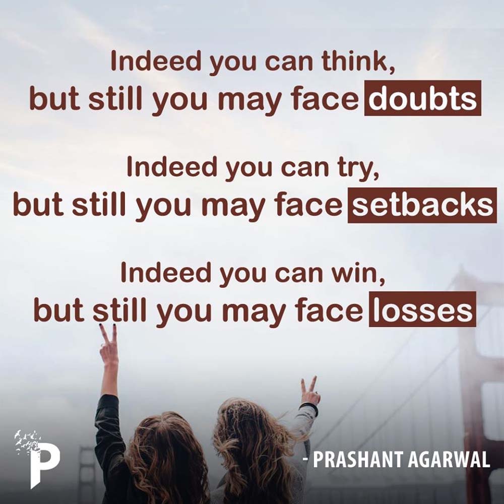We can never be sure of success and can face loss even if we give our best. So we should always be ready for challenges and should keep ourselves motivated amidst all negativity.