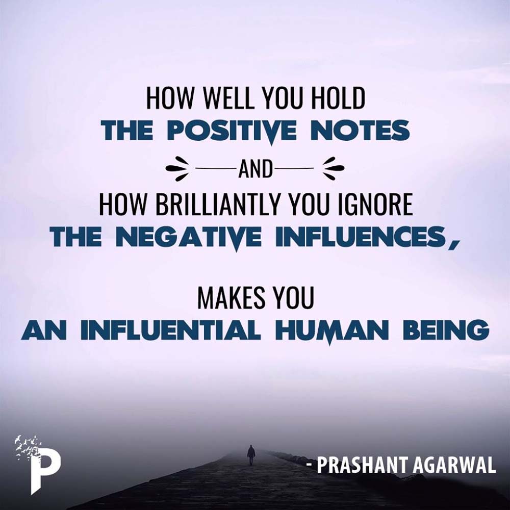 We often wonder over how some people becomes influential beings and we credit their achievements for it but the real element that makes them influential is their art of holding positive notes and ignoring negative influences.