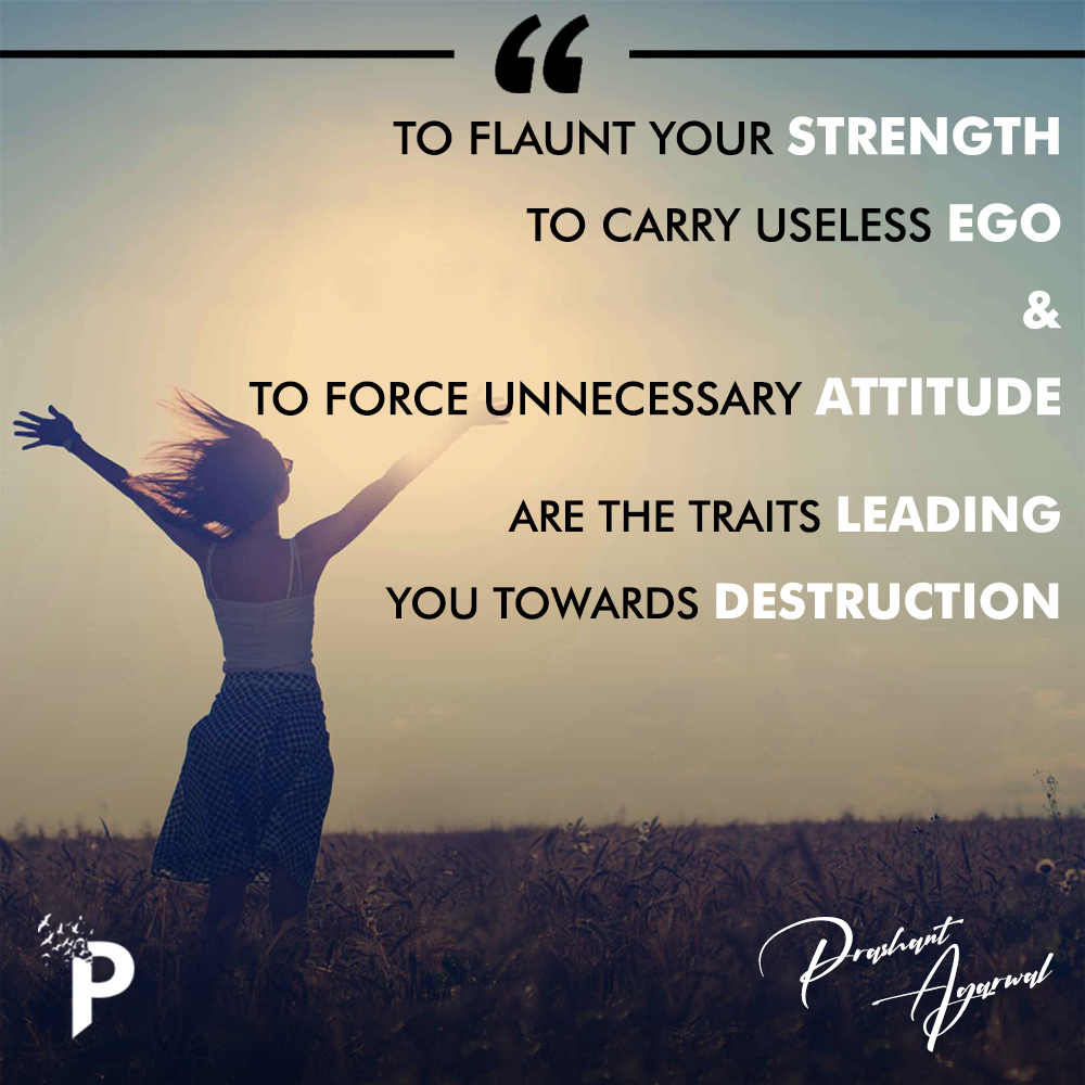 If you flaunt your strength and carry ego and unnecessary attitude, you would lead no where but towards destruction.
