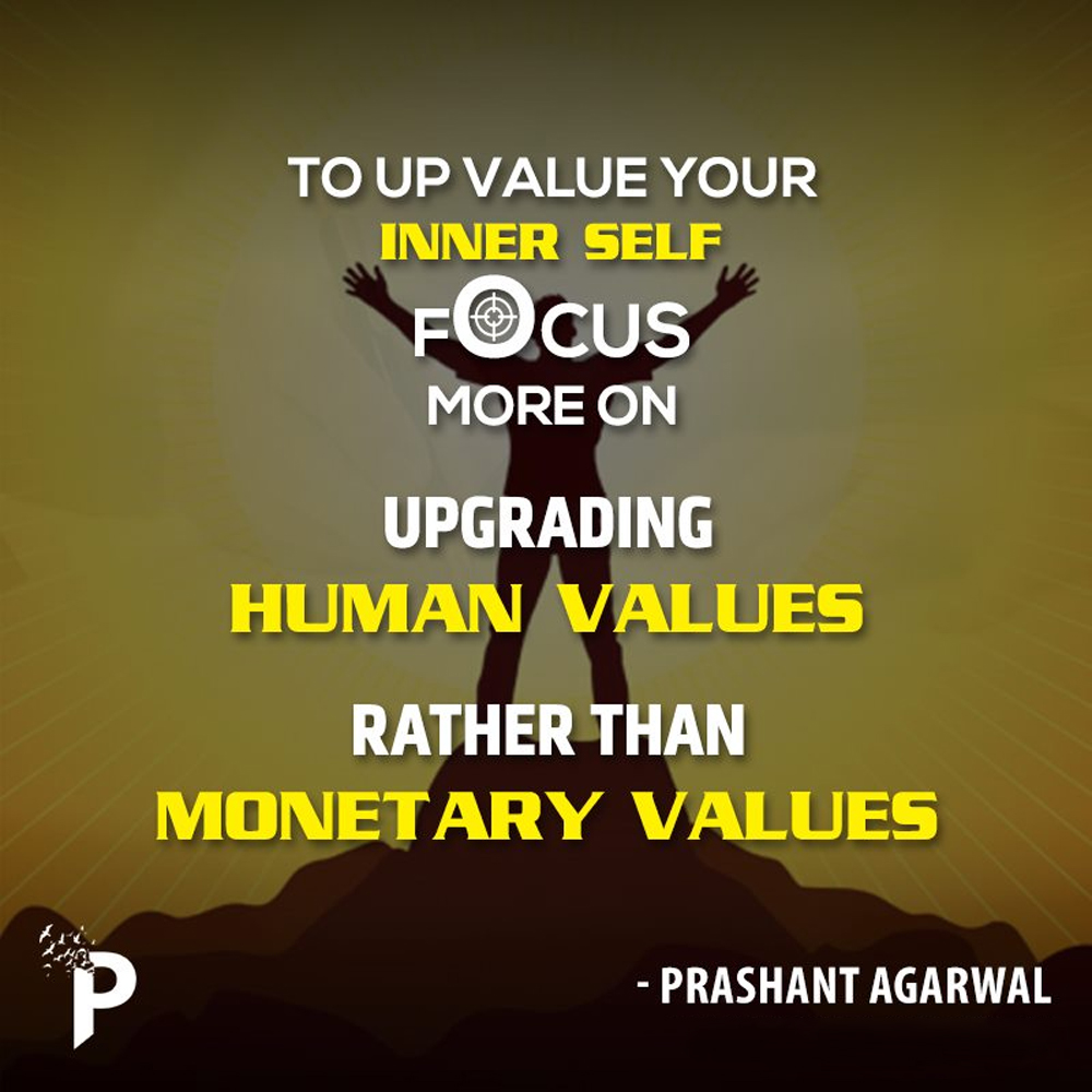 To up value your inner self, focus more on upgrading human values rather than monetary values.